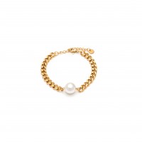 Gold colored stainless steel bracelet chain with three olive colored stones..