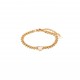 Gold-colored stainless steel bracelet with leaf design with heart element and white mother-of-pearl